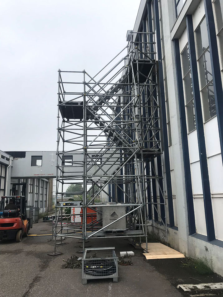Al onze trappentorens worden geconstrueerd met het steigermateriaal Layher. Dit is een uiterst modulair steigermateriaal dat ons instaat stelt om veilige en hoogwaardige trappentorens te realiseren. Door het gebruik van dit steigermateriaal kunnen wij optimale flexibiliteit bieden, en trappentorens ontwikkelen die perfect aansluiten bij de locatie en de specifieke eisen van uw project.