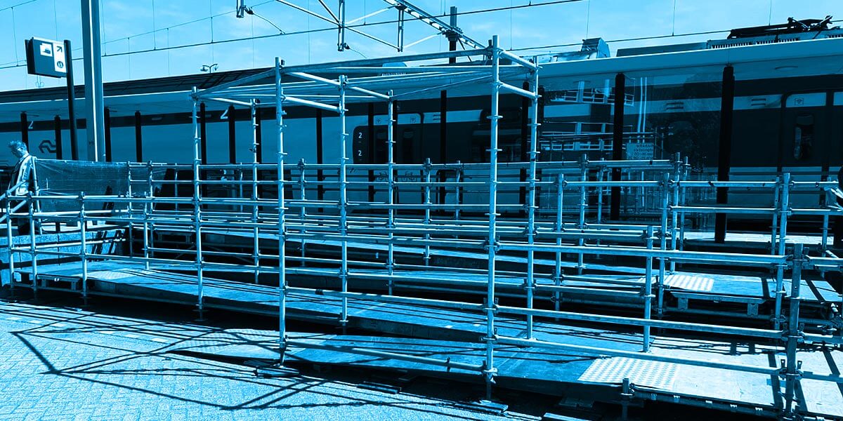In verband met de verbouwing van Station Gouda heeft Van Ham Infra een tijdelijke trap geplaatst t.b.v. een fietsenstalling. I.v.m. de stabiliteit is extra ballast toegevoegd.