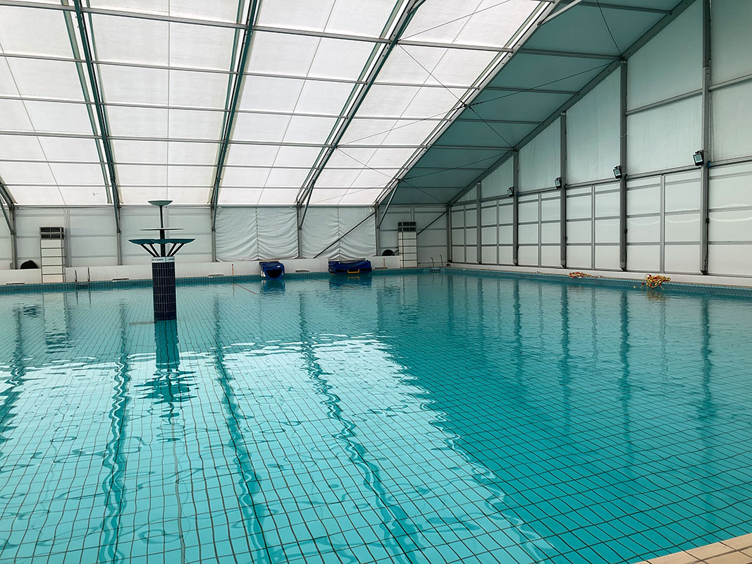 De tent is voorzien van 4 verwarmingsunits met een gekoppelde digitale thermostaat en er is recirculatie toegepast ten einde het brandstofverbruik te minimaliseren. Middels een sluis van 6x6 meter is de tent gekoppeld aan het bestaande gebouw van het Ir. Ottenbad en beide tenten zijn voorzien van voldoende verlichting. Na wat tests met de temperatuur was het ‘binnenzwembad’ vanaf 4 november klaar voor gebruik!