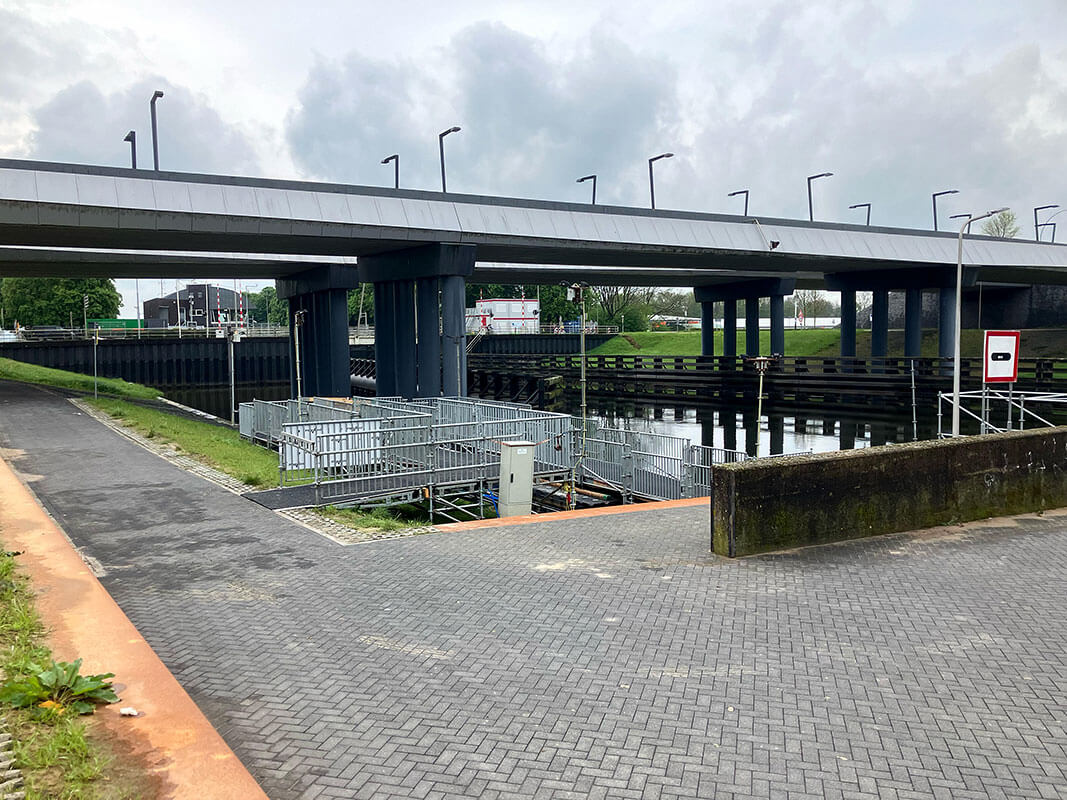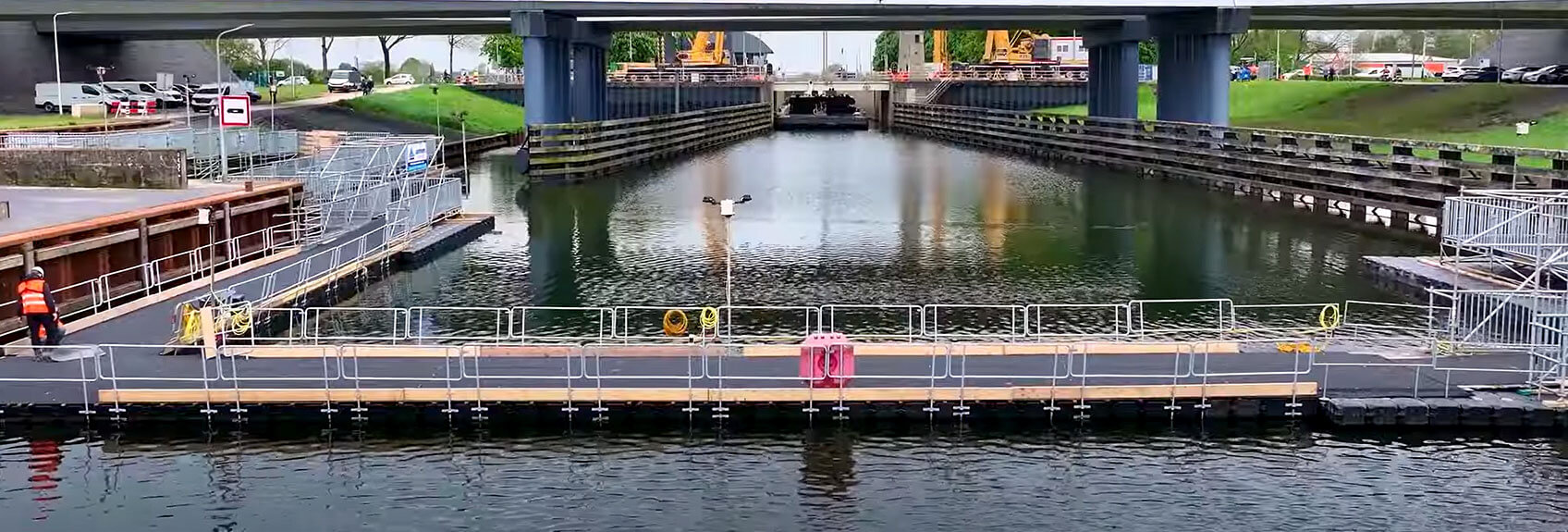 Tijdens de renovatie van de brug over de Spooldersluis in Zwolle was het noodzakelijk om het doorgaande verkeer tijdelijk om te leiden. Om de overlast voor omwonenden en passanten zoveel mogelijk te beperken, is in opdracht van Easy Pontons gekozen voor de aanleg van een tijdelijke fiets- en wandelbrug. Deze brug maakte het mogelijk om de sluis veilig en comfortabel over te blijven steken gedurende de werkzaamheden aan de vaste brug. Dankzij deze oplossing konden fietsers en voetgangers hun route zonder grote omwegen blijven volgen, wat bijdroeg aan de bereikbaarheid en leefbaarheid van de omgeving.