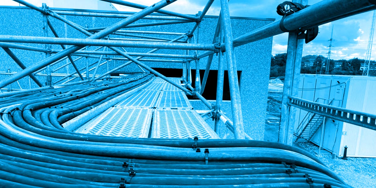 Op een bouwplaats in België was een tijdelijke stroomvoorziening nodig. Omdat er vrachtwagens en kranen rondom het gebouw moesten kunnen rijden, was het echter niet mogelijk om de kabels over de grond te leggen tussen de generatoren en de bouwplaats. Gevraagd werd of wij een tijdelijke kabelbrug wilden plaatsen die minimaal 52 weken zou blijven staan.